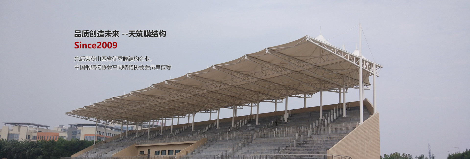 太原天筑膜結(jié)構(gòu)技術(shù)有限公司主要從事膜結(jié)構(gòu)工程的方案設(shè)計、結(jié)構(gòu)設(shè)計、靜動力計算分析、膜材的裁剪設(shè)計、膜材的加工制作安裝、鋼構(gòu)件的設(shè)計加工整體安裝及使用維護(hù),集科研開發(fā)與制作安裝為一體的科研生產(chǎn)型企業(yè)。服務(wù)范圍涉及電動車/自行車車棚、汽車停車棚、廣場公園景觀張拉膜、新能源充電樁膜結(jié)構(gòu)雨棚、體育場看臺膜結(jié)構(gòu)、加油站收費站膜結(jié)構(gòu)大棚、表演舞臺膜結(jié)構(gòu)雨棚、廊道遮陽棚、永久性膜結(jié)構(gòu)建筑遮陽棚、污水池膜結(jié)構(gòu)封閉、充氣膜等膜結(jié)構(gòu)工程的設(shè)計、制作加工安裝、售后維修服務(wù)。公司立足太原,輻射華北、華中地區(qū)數(shù)十省,是華北地區(qū)專業(yè)性、規(guī)模型的膜結(jié)構(gòu)工程企業(yè)之一。公司成立以來,組織承建了520余項近36萬平方米的膜結(jié)構(gòu)工程……